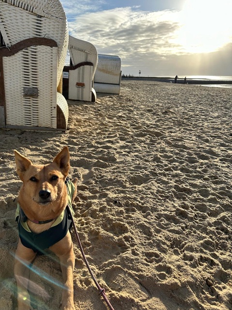 Ansonsten haben wir dieses Jahr wieder viele Ausflüge mit Susa unternommen, bei denen sie auch in der Öffentlichkeit immer selbstsicherer und neugieriger wird. Im Herbst sind wir wieder einige Tage an der Nordsee gewesen. Im Restaurant nimmt sie dort auch schon einmal Leckerlis von den Kellnern. Zuhause betätigt sich Susa immer noch ausgiebig in unserem Blumenbeet als Gärtnerin, indem sie riesige Löcher buddelt, Wurzeln freilegt und Blumen herausreißt. Selbst ihr Halsband wurde schon eingegraben. Nach getaner Arbeit ruht sie sich dann gerne im Garten aus und badet bei warmen Wetter in ihrem Pool.