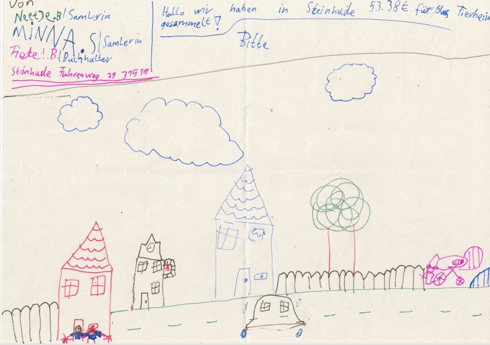 Kinder aus der Nachbarschaft haben wieder fleißig für unsere Tiere gesammelt. Angetrieben von ihrer Tierliebe und dem Wunsch zu helfen, gingen sie von Tür zu Tür, erklärten ihr Anliegen und konnten so viele Menschen für ihre Idee begeistern.